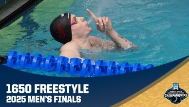 DI Men's College Swimming & Diving - Home DI Men's Swimming & Diving Every DI men's swimming and diving champion since 1937 Texas wins 2025 titleRelated videos 2025 CHAMPIONSHIP 200 men's butterfly 100 men's backstroke 200 men's freestyle 400 freestyle relay 200 backstroke 100 freestyle 1650 freestyle 200 breaststroke 200 freestyle relay 50 freestyle 800 freestyle relay 200 medley relay Division I Men's Swimming & Diving Championships March 25-28, 2026 Georgia Tech Aquatic Center | Atlanta, GA Sign Up for Ticket Info Game Program Championship Recaps ๐ค Texas wins 2025 ๐ฑ Arizona State wins 2024 ๐ป California wins 2023 ๐ป California wins 2022 ๐ค Texas wins 2021 ๐ป California wins 2019 ๐ค Texas wins 2018 Follow DI Men's Swim & Dive